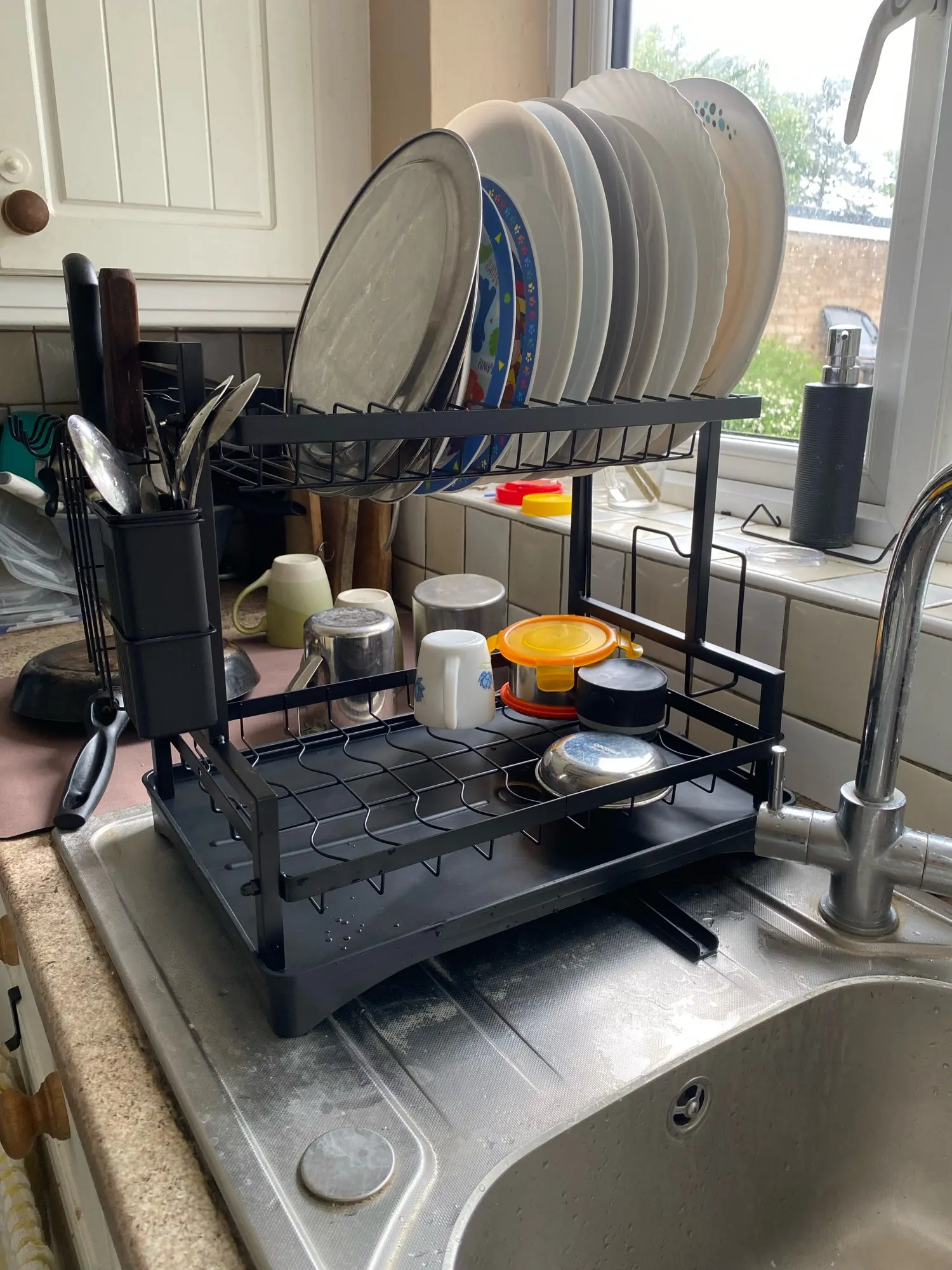 Abtropfgestell, 2-Stufiges, Rostfreies Abtropfgestell Mit Abtropfschale Und Utensilienhalter Mit 360 ° Abflussbrett-Set Mit Drehbarem Auslauf